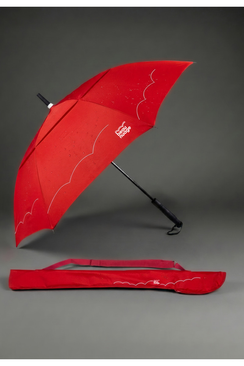 All Beau Nuage umbrellas, including The Gentleman, are equipped with a patented absorbent cover. The cover is designed to solve the problem of wet bulkyumbrellas, which are inconvenient in public transport or when getting in a shop. Store the wet umbrella in its cover, and with its shoulder strap, you can carry it very easily.